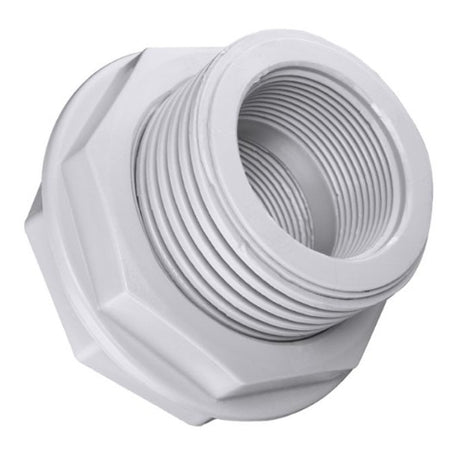 The Roto Quip 75mm male bulkhead fitting is made from UV-stabilised polypropylene, features a TPE seal, and offers a 75mm BSP male thread, suitable for tank or plumbing applications in South Africa.