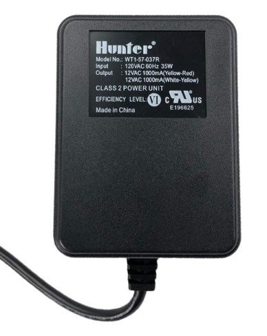 The Hunter Pro-C/XC indoor transformer is a 24VAC, 1000mA multi-voltage plug-in transformer designed to safely power all indoor Hunter controllers, including Pro-C, XC, XC Hybrid, and X-Core models.